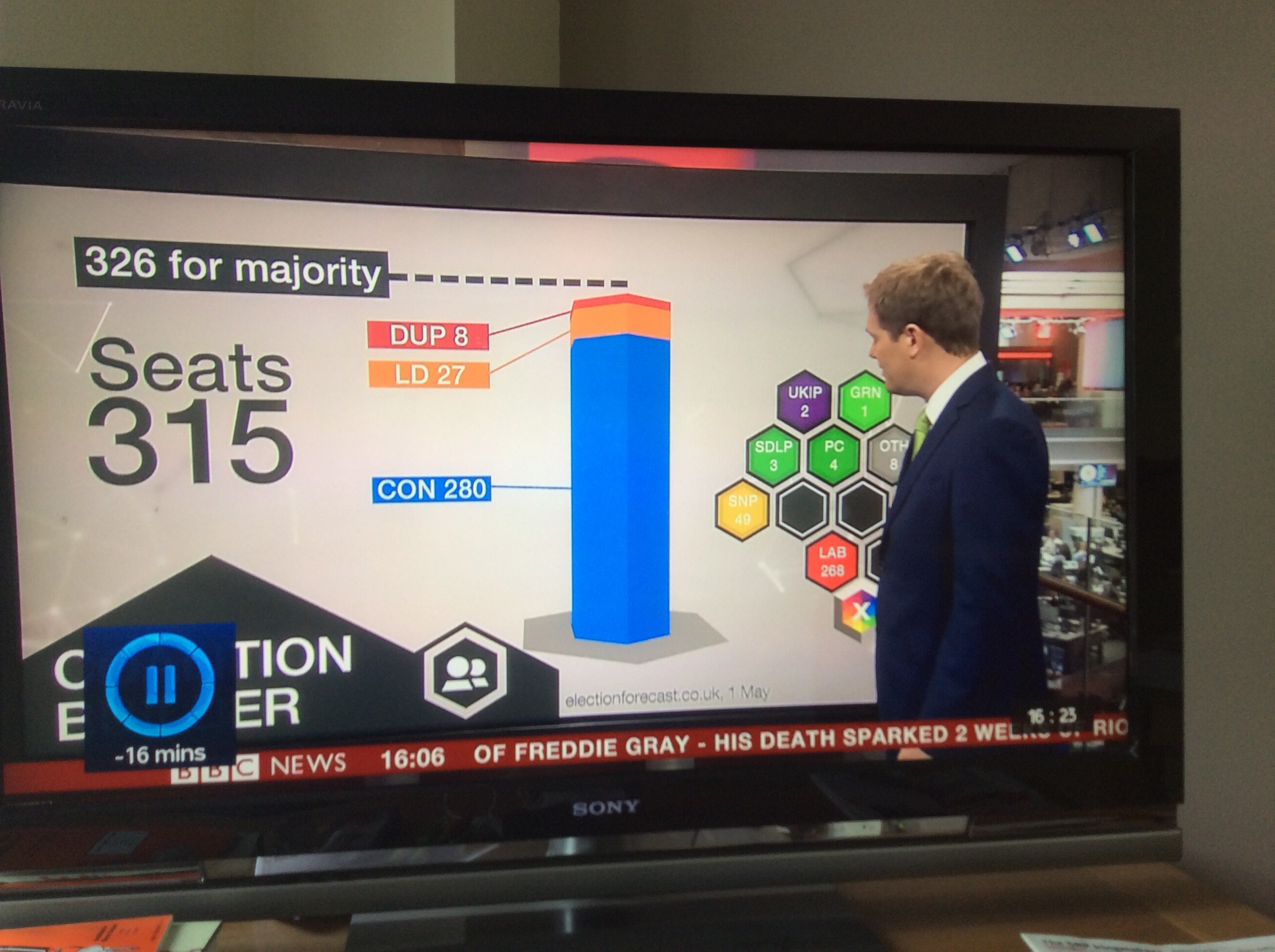 So that is 8 by-elections in Tory seats they can lose before they forfeit their majority. There were 21 by-elections during the last Parliament, but if you are a Tory opponent don’t get excited – most of them were in opposition seats (see here). So it is quite likely the Tory majority will, arithmetically at least, hold throughout the Parliament.