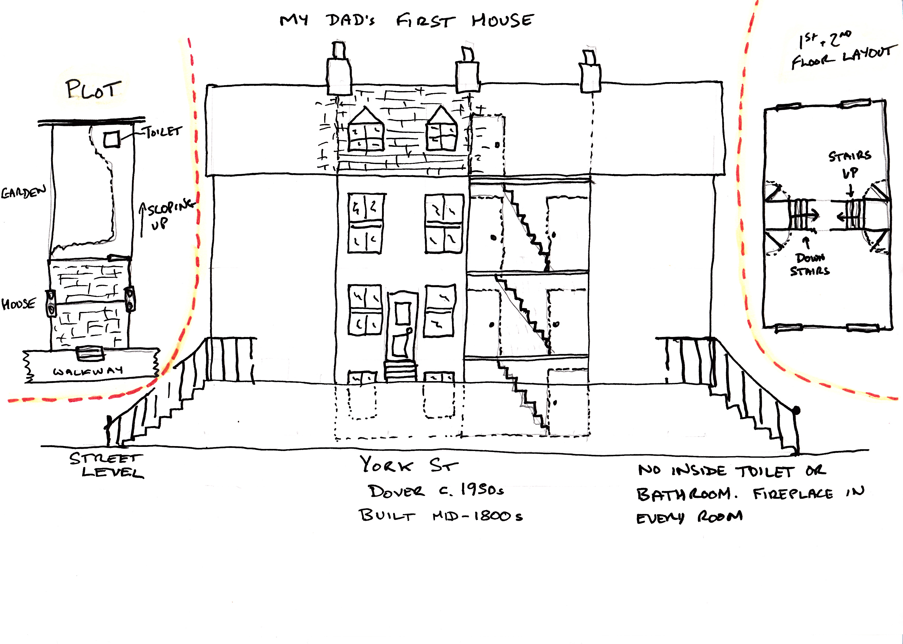 The ground floor had a kitchen at the rear, opening onto the ‘garden’. I don’t remember what was in the front room, but think it might have been a cellar/coal store.