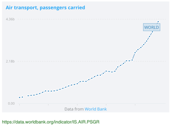 In 2018 humans undertook some 4.4 billion (yes, billion) flights globally. Which means in the first 3 months of 2020, as the virus spread and airlines had not yet been shut down, there may have been over 1 billion passenger journeys by air.